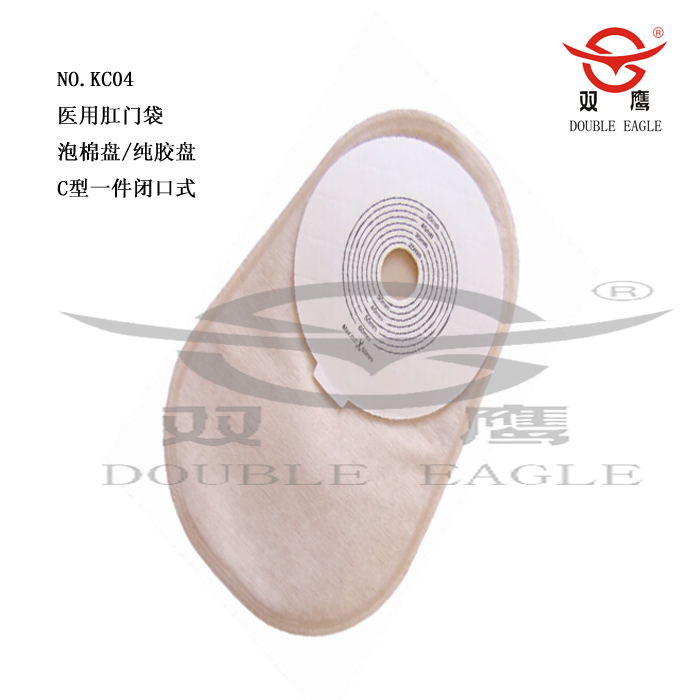 一件式造口袋. 兩件式在口袋'清潔造口及其周圍皮膚并待其干燥后,除去肛門袋底盤外的粘紙,對準(zhǔn)造口貼緊周圍皮膚,袋口的凹槽與底盤扣牢,袋囊朝下尾端反折,并用外夾關(guān)閉.必要時應(yīng)有彈性的腰帶固定人工肛門袋。